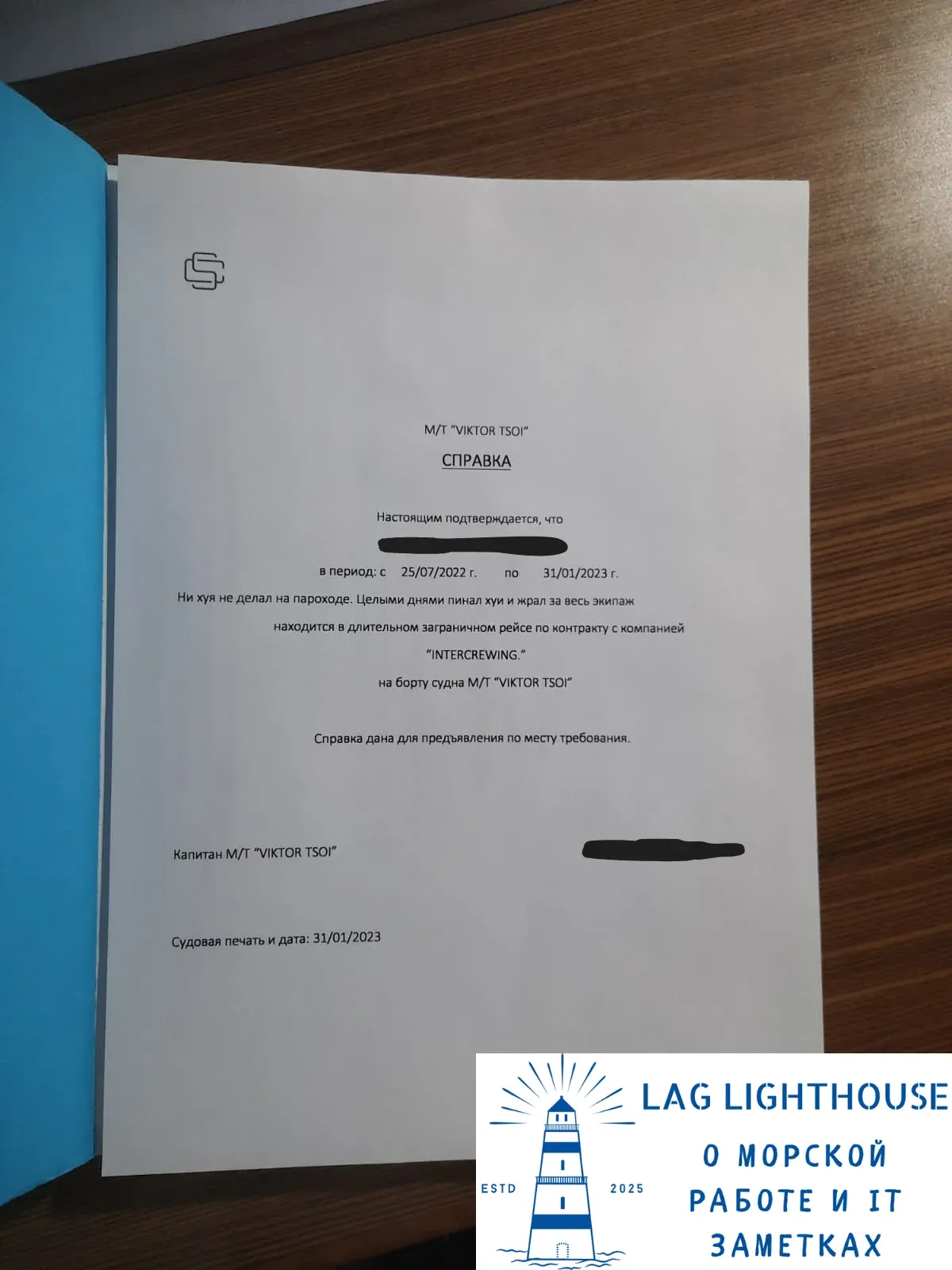 Кстати отправляет на судно VIKTOR TSOI крюинг Intercrewing LTD, который в Питере.