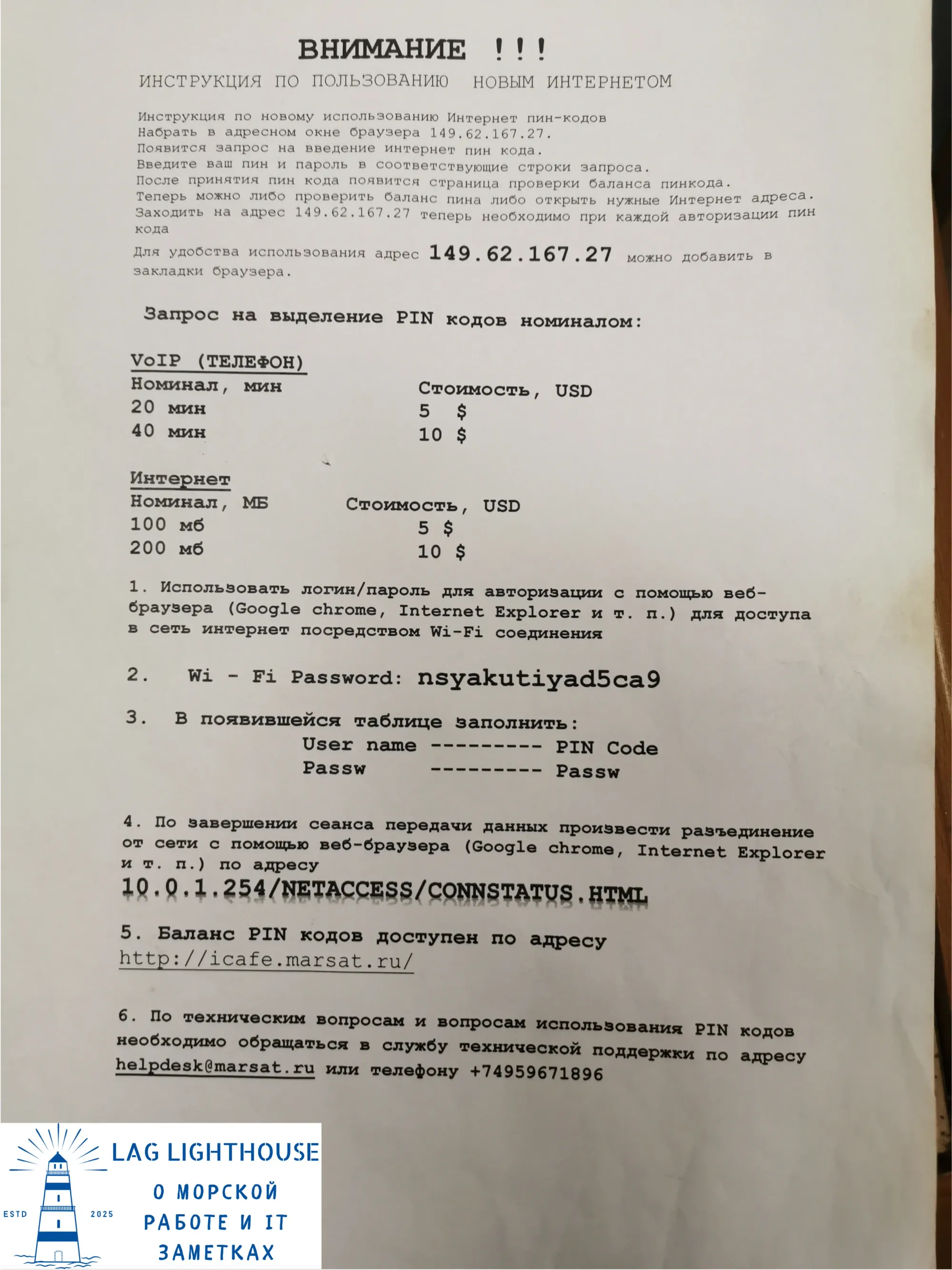С интренетом на судне, когда я приехал было все очень печально. Изначально давали 100 мб, на какой-то оборванной бумажке с кодом. Если эти 100 метров заканчивались, то вроде как можно было получить еще сотку, но когда и не давали. Я особо не понял этих порядков, да и не сильно хотелось. Скорости там никакой не было, да и трафик такой, что печаль.