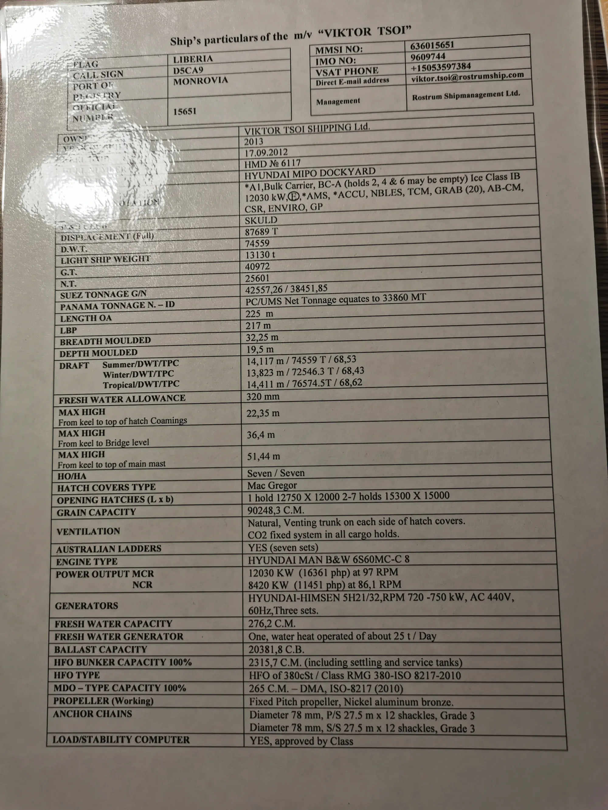 Про судно VIKTOR TSOI