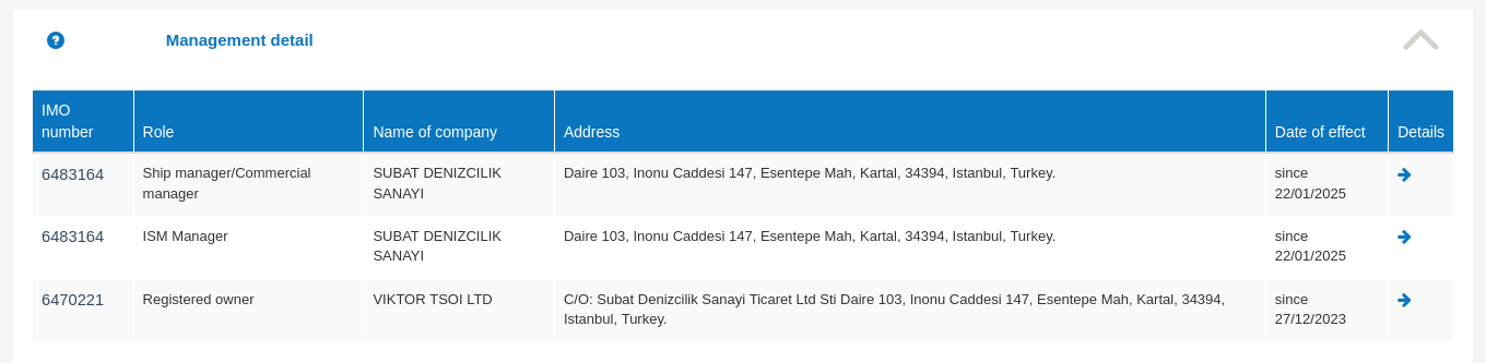 Исходя из официальной документации, а именно из ship's particular, менеджемент у судна осуществляет Rostrum Shipmanagment.