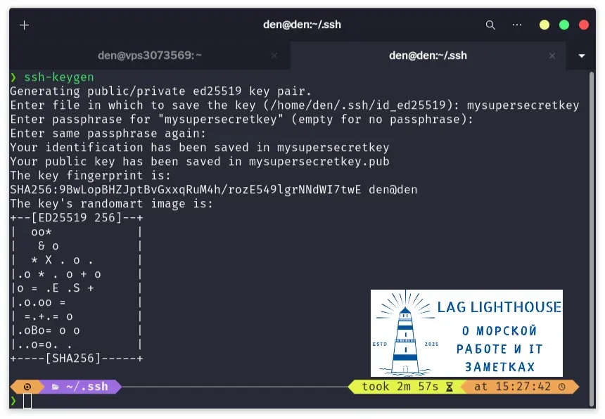 So let's create ssh keys. In Linux it's very easy. On my home system I use Void Linux, so just proceed to .ssh folder and run ssh-keygen on local computer, not on server with Ubuntu...